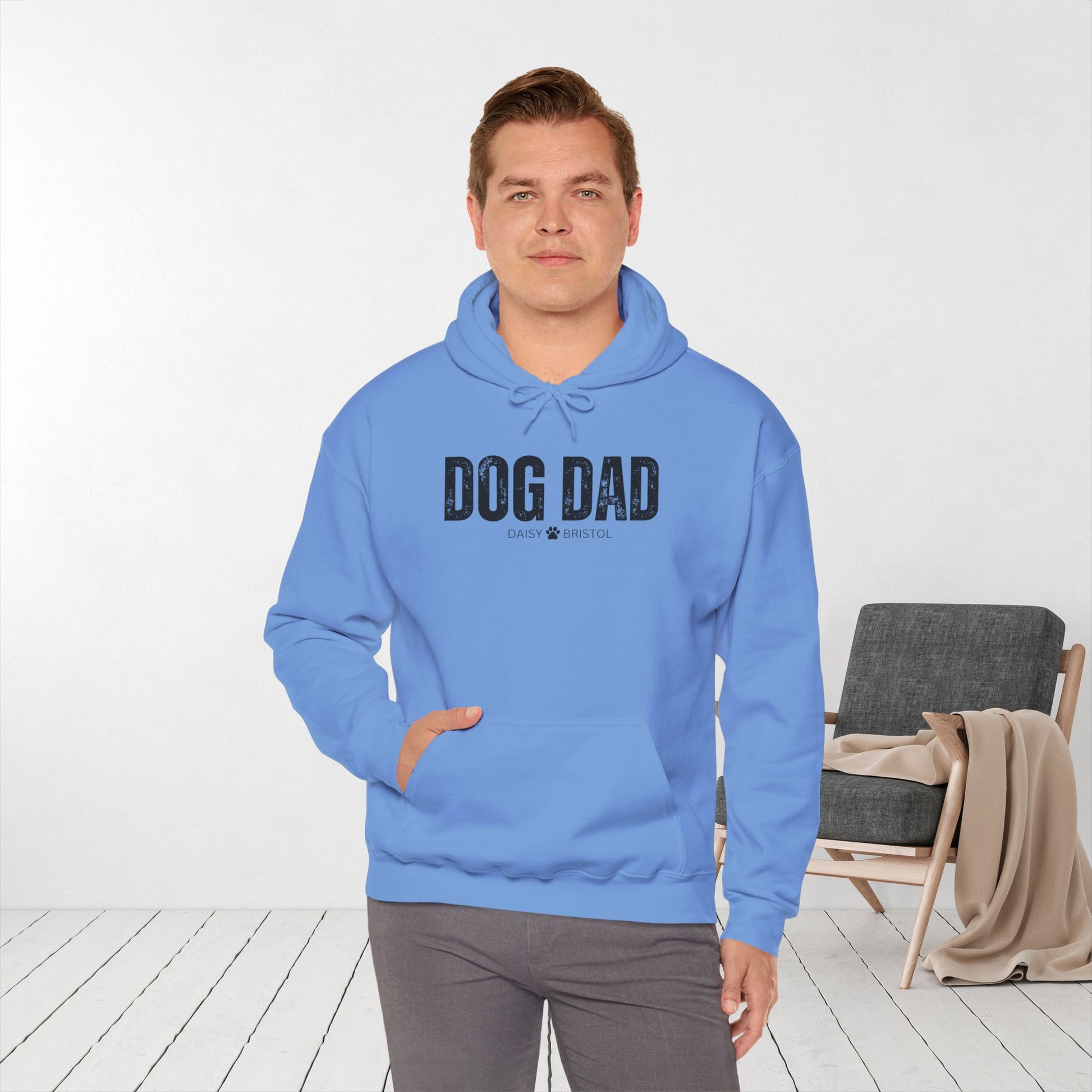 Crafted from a warm cotton/polyester blend, this hoodie offers comfort, durability, and a classic unisex fit. Perfect for cool evenings, dog walks, or lounging at home with your pack, it’s designed to keep you cozy while celebrating the best role you’ll ever have: being a dog dad.